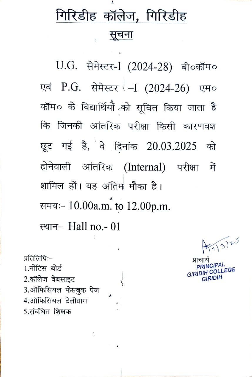 Giridih College was established under Contemporaneous Bihar University in 1955 by the eminent personalities & public representatives of Giridih to impart quality education in the society