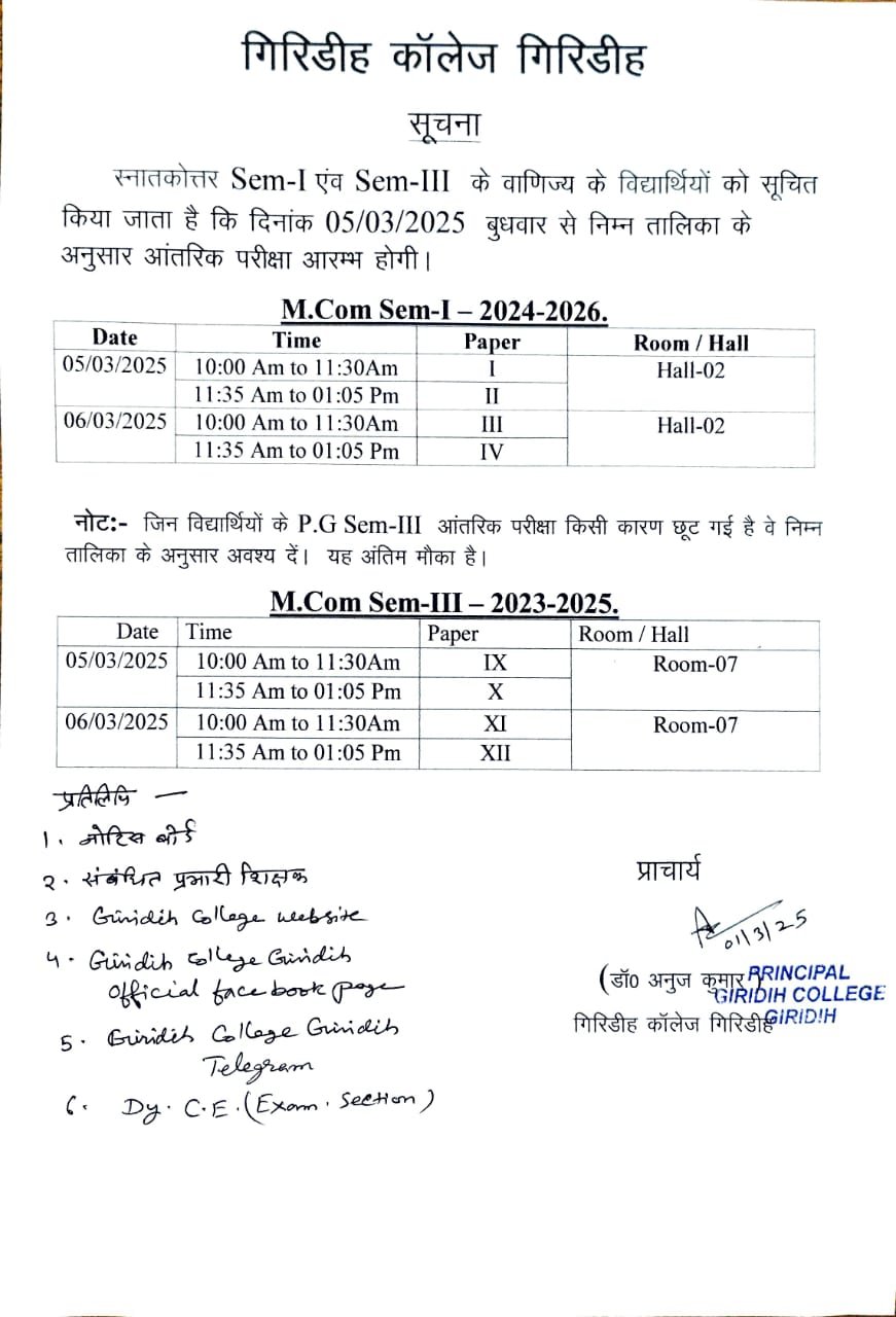 Giridih College was established under Contemporaneous Bihar University in 1955 by the eminent personalities & public representatives of Giridih to impart quality education in the society