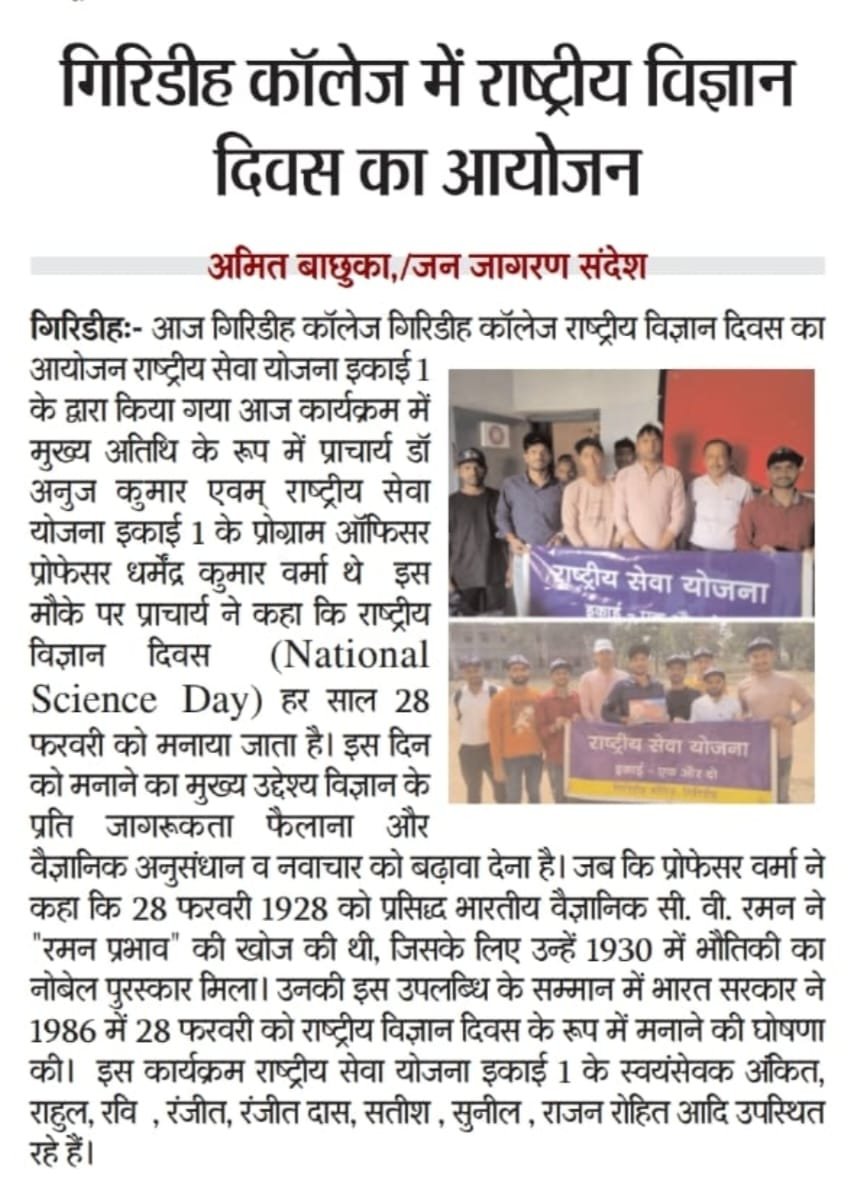 Glance गिरिडीह कॉलेज में राष्ट्रीय विज्ञान दिवस का आयोजन