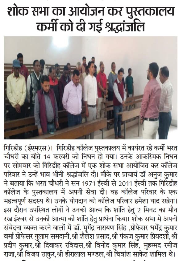 Glance शोक सभा का आयोजन कर पुस्तकालय कर्मी को दी गई श्रद्धांजलि