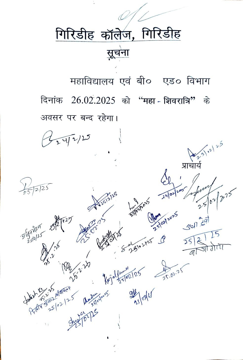 Giridih College was established under Contemporaneous Bihar University in 1955 by the eminent personalities & public representatives of Giridih to impart quality education in the society
