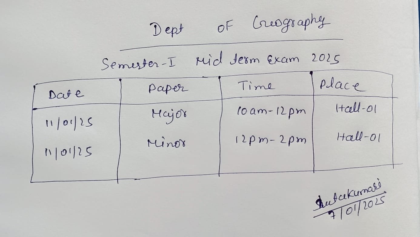 Mid-term internal Examination Programme of FYUGP Sem-I (2024-28) Geography