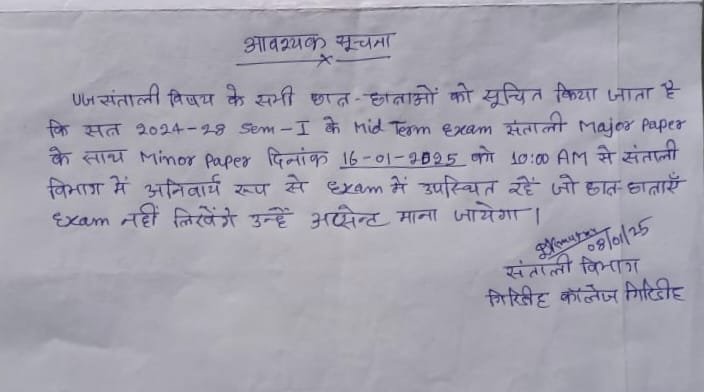 Mid-term internal Examination Programme of FYUGP Sem-I (2024-28) Santhali