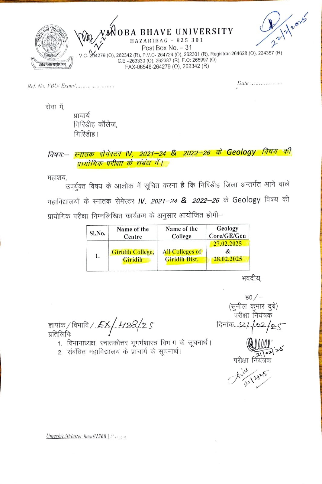 Revised schedule of practical examination is hereby approved for FYUGP Semester-11 Session 2024-28, 2022-26 and 2021-24