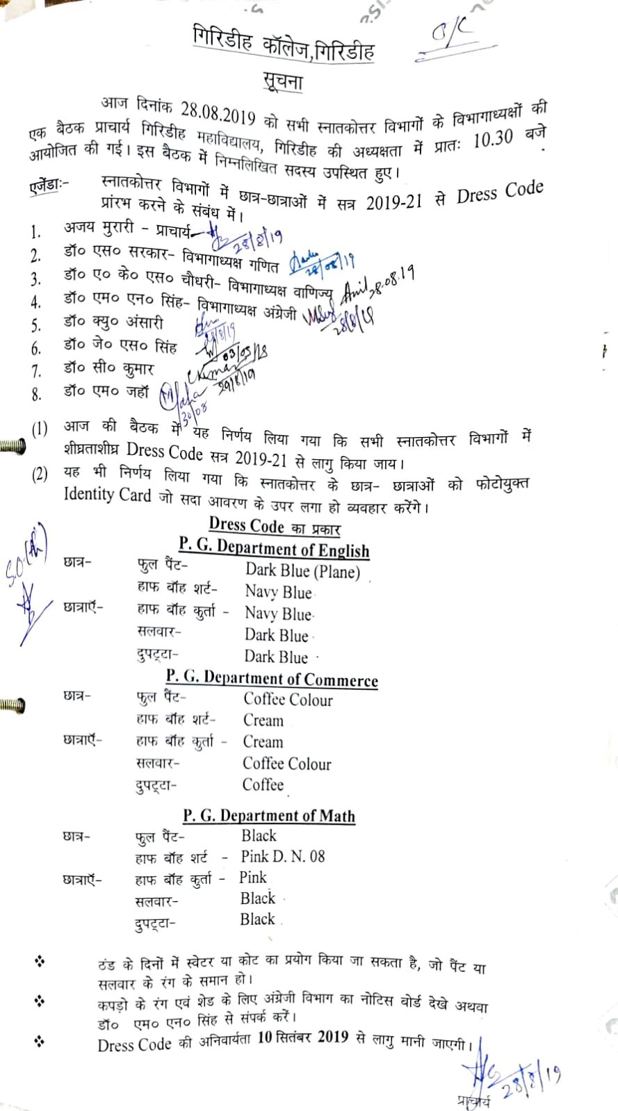Dress Code Mandatory for All PG Student’s