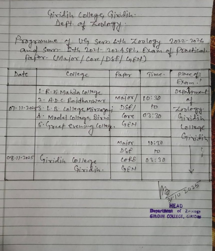 Giridih College was established under Contemporaneous Bihar University in 1955 by the eminent personalities & public representatives of Giridih to impart quality education in the society